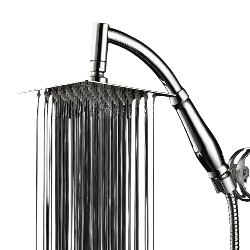 Home page Home page Home & Household Supplies Bathroom Shower Heads High-Pressure Rain Shower Head 20x20 cm Square Stainless Steel Head with Wall-Mounted Curved Extension 29 cm Installation G 1/2 Bathroom