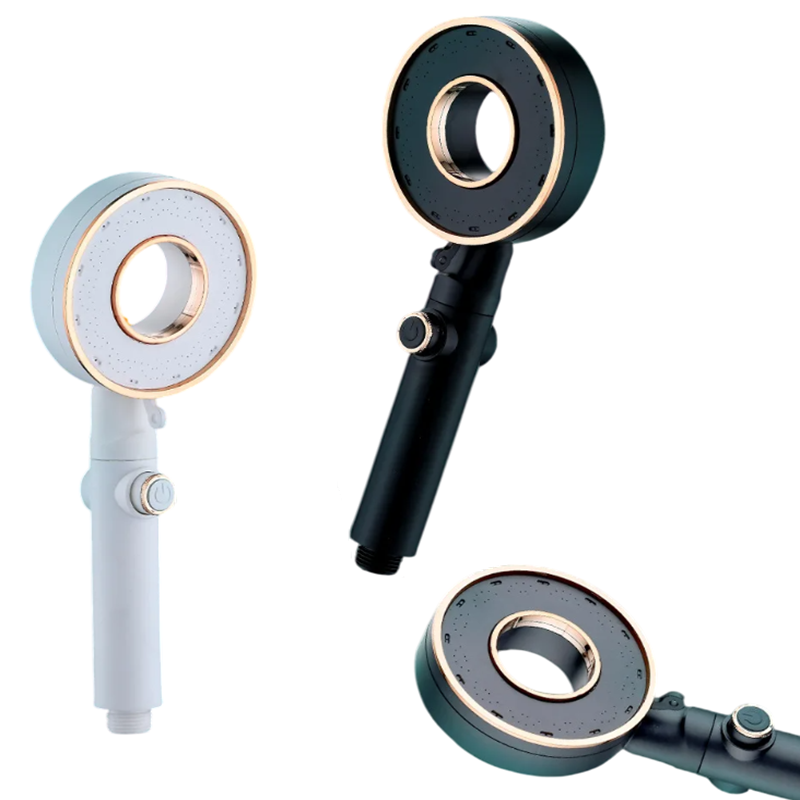 Water-saving handheld shower with high pressure, three flow modes, spray nozzle, and one-click quick stop button. Full description