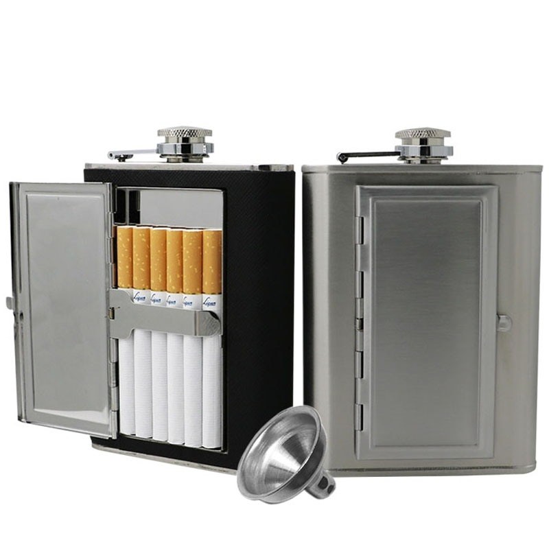 Hip Flask with Cigarette Case
