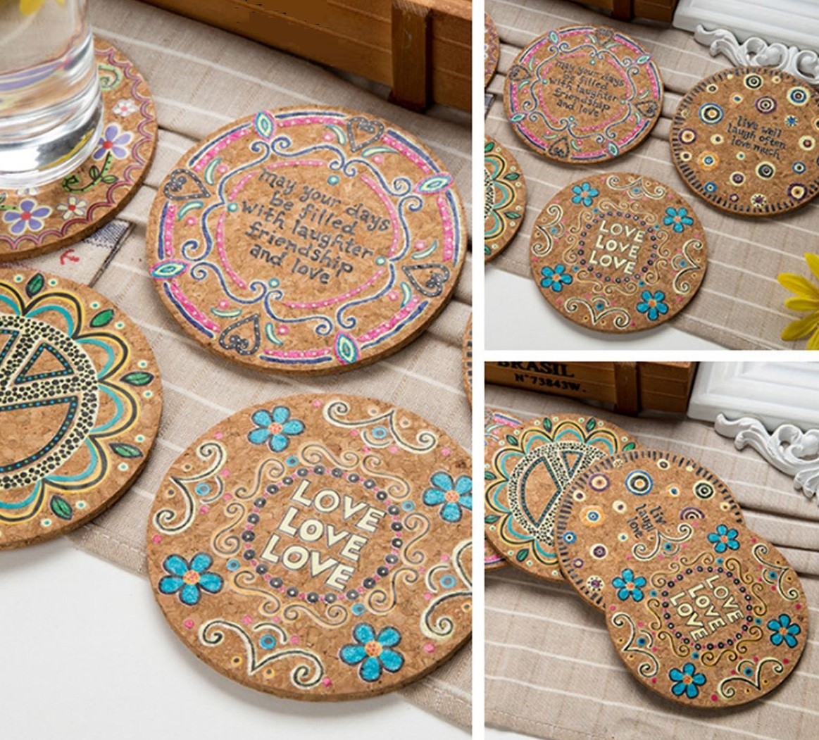 Hippie Cork Coasters 4 pcs