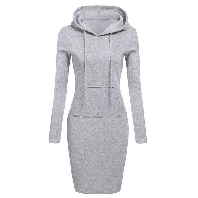 Comfortable autumn hooded sweatshirt dress.
