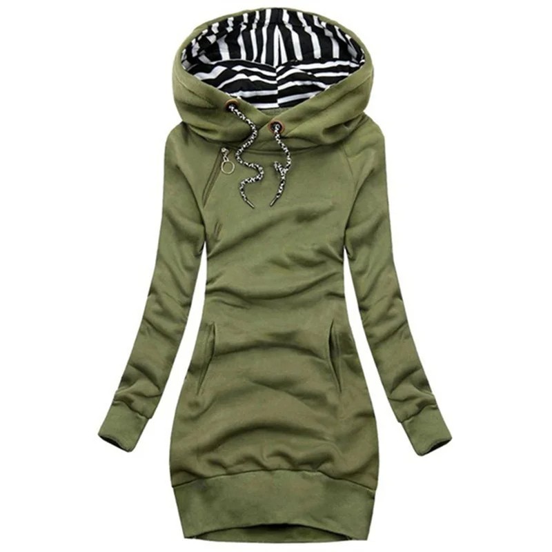 The sweatshirt dress is a great choice for women seeking comfort without compromising on design. It provides warmth, coverage, and style, making it an ideal choice throughout the year. Its simplicity allows for a customised look using accessories or layering with other clothing. Loose and comfortable fit, kangaroo pocket, hood with drawstring, soft material, and universal informal look make this dress a staple of any casual wardrobe.