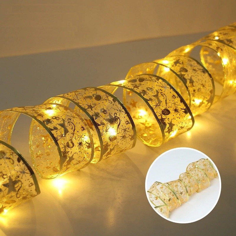 Enhance your Christmas season with this illuminated ribbon! This festive ribbon is made from copper and mesh. The ribbon is adorned with 50 light-up LED diodes. It is perfect for wrapping gifts or decorating the Christmas tree. Additionally, it is waterproof, so you can use it indoors and outdoors.