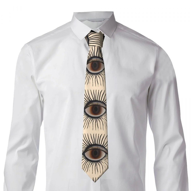 Stylish men's tie with a mysterious Illuminati pattern and eyes, measuring 145 cm in length and 8 cm in width. Ideal for themed events, costumes, and bold outfits. Full description