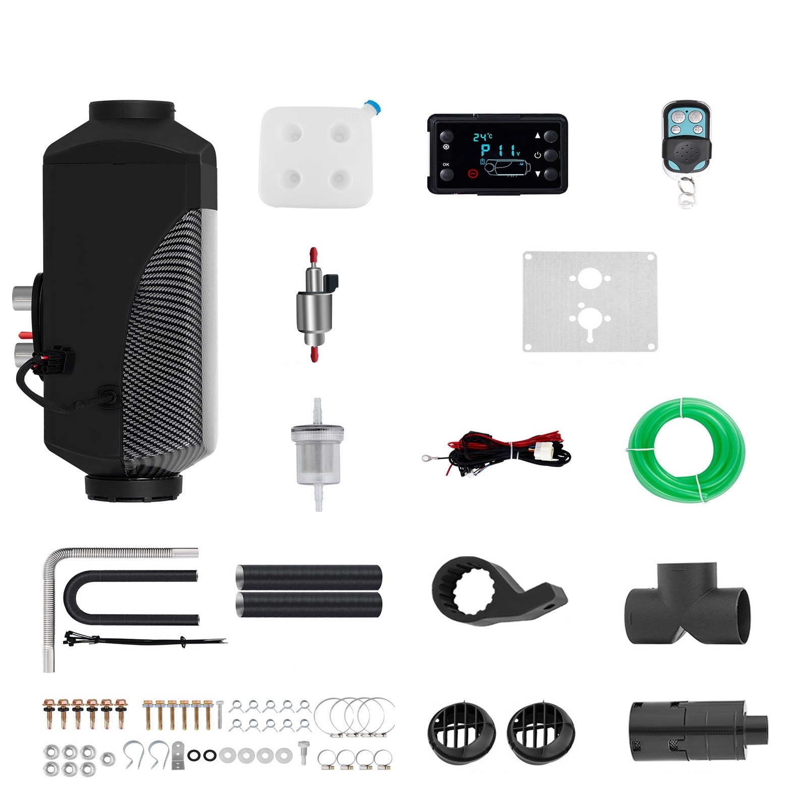 The independent car heater should not be missing from your equipment. As it can develop a power of up to 5000 W, it will keep your passengers warm throughout the journey in the car. It has a diesel tank with a capacity of 15 litres, so you won't have to stop frequently for refuelling. The heater comes with complete accessories for easy installation, including a fuel pump, LCD switch, inlet pipe or silicone seal.
