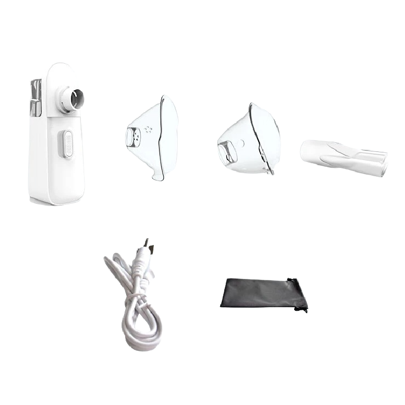 Contents of the package: 1x inhaler, 1x adult mask, 1x children's mask, 1x mouthpiece, 1x storage bag, 1x charging cable