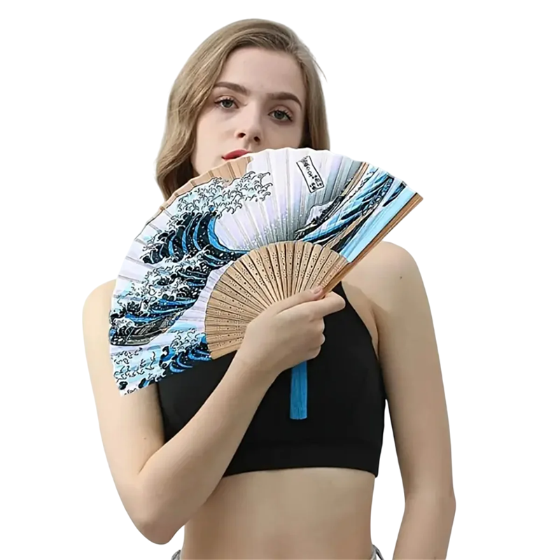 Home page Home page Clothing & Accessories Women’s Clothing Women’s Accessories Women’s Fans Japanese Folding Fan 21 cm Traditional Sea Motif Blue Tassel Fabric Fan Made of Bamboo Elegant Accessory Wall Decoration
