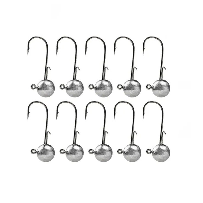 Quality jig hooks with large heads weighing 10 g, ideal for lure fishing. The sharp and sturdy hook ensures a reliable hookset and secure retention of the fish. Full description