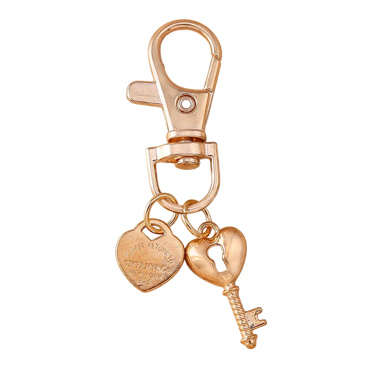Metal keychain made of zinc alloy featuring a key and heart design. An elegant and durable accessory for keys, handbags, and backpacks for everyday use. Full description