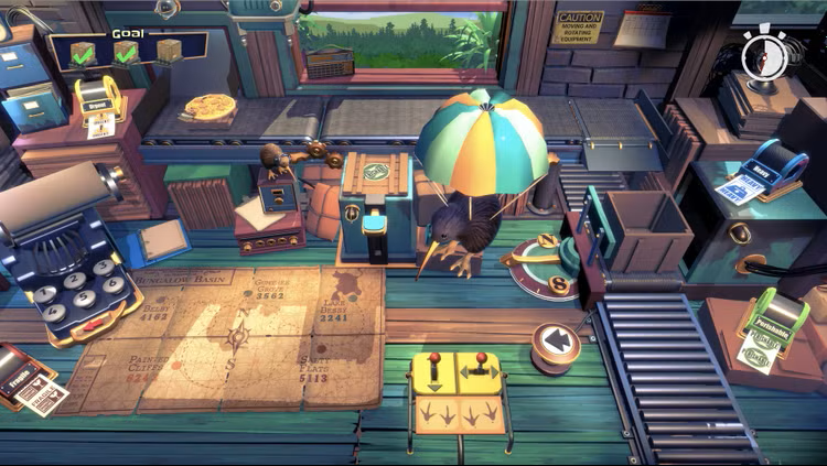 Encounter hazardous postal environments and navigate seasonal risks while traversing various postal rooms of Telepost, and team up with a friend to help these adorable kiwis complete their tasks regardless of the weather. Unlock new accessories and customise your kiwi to become the best-dressed postal bird in the Bungalow Basin.