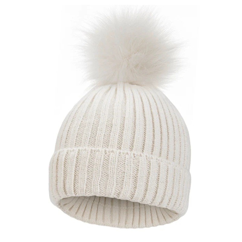 Knitted Children's Hat 1-3 Years Circumference up to 60 cm Ribbed Stretchy Large Pom-Pom Polyester Winter Hat for Toddlers