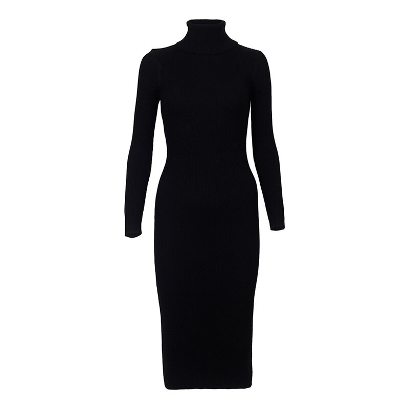 Warmer dress with a roll neck, ideal for cooler seasons.