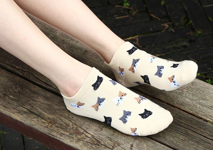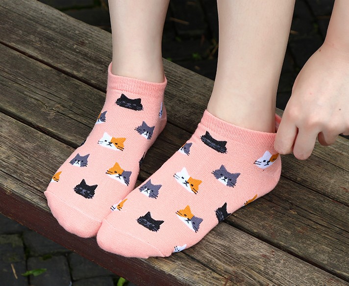 Ladies' Ankle Socks with Cats - 5 Pairs