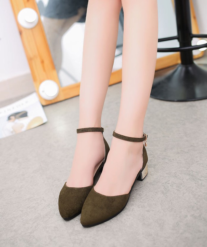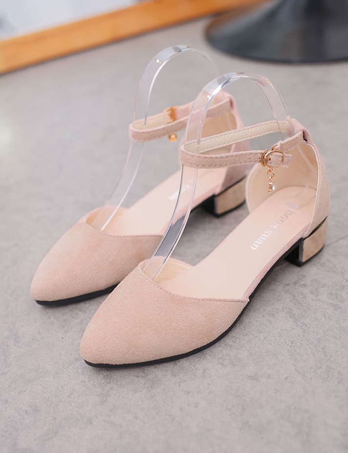 The ballerinas feature a strap that fastens around the ankle.