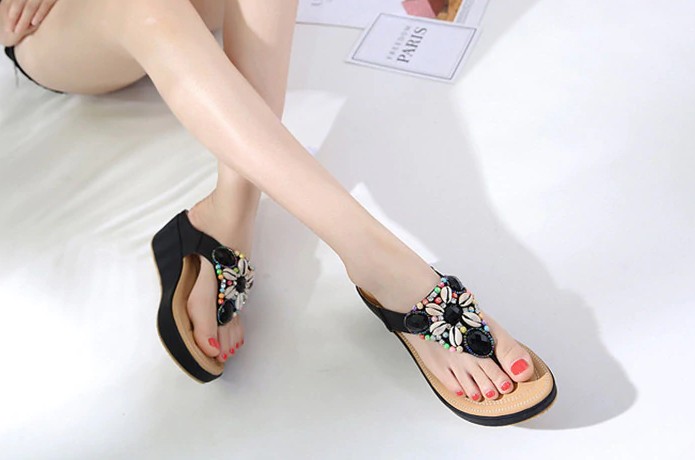 Be ready for a holiday by the sea with these amazing slippers adorned with rhinestones.