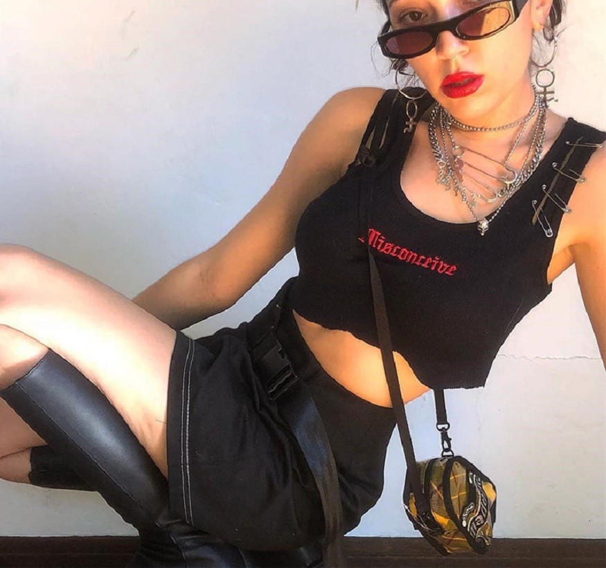 Ladies' Black Printed Crop Top A1096
