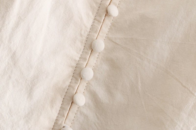 Adorned with buttons along the entire length.