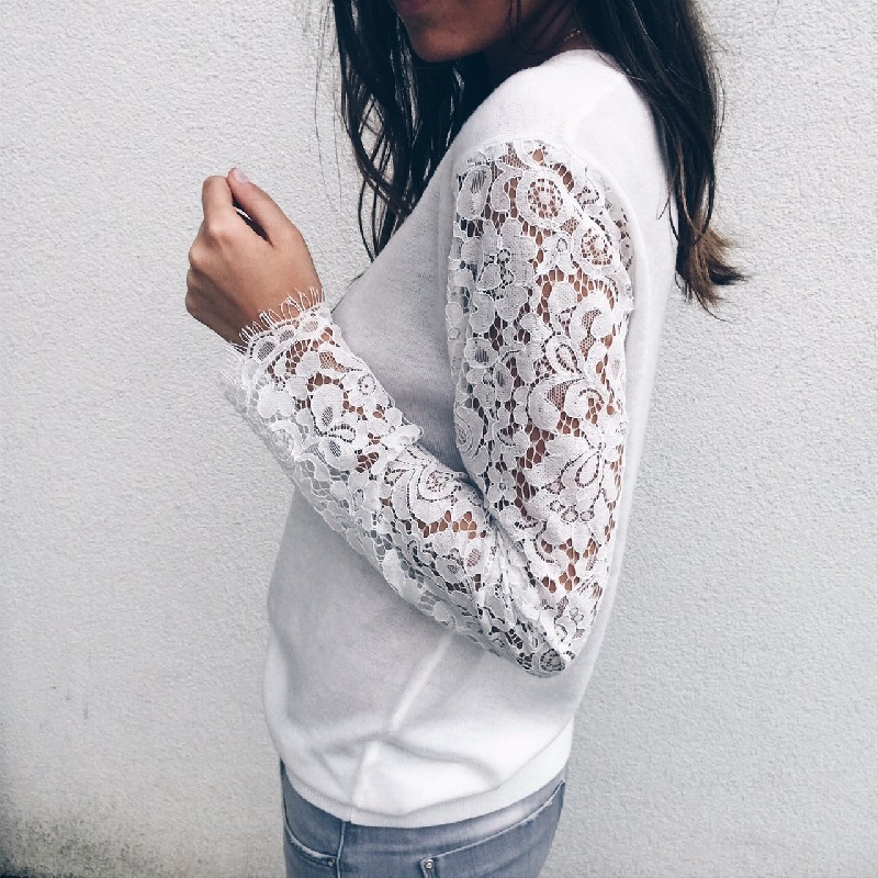High-quality blouse. Long lace sleeves and a deeper neckline.