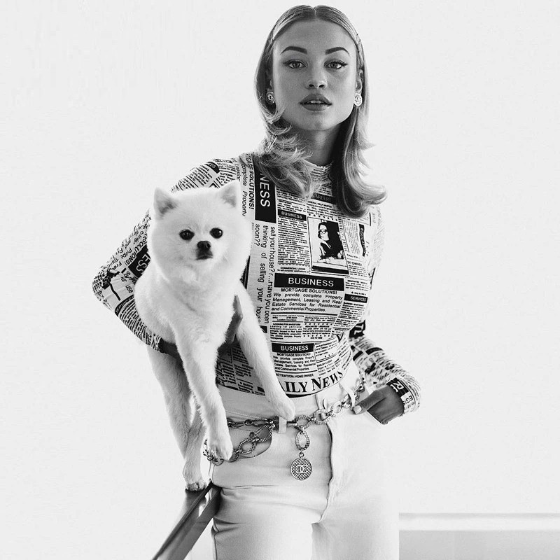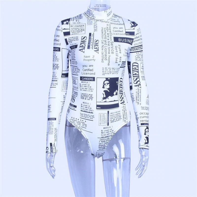 Ladies' Bodysuit with Newspaper Print