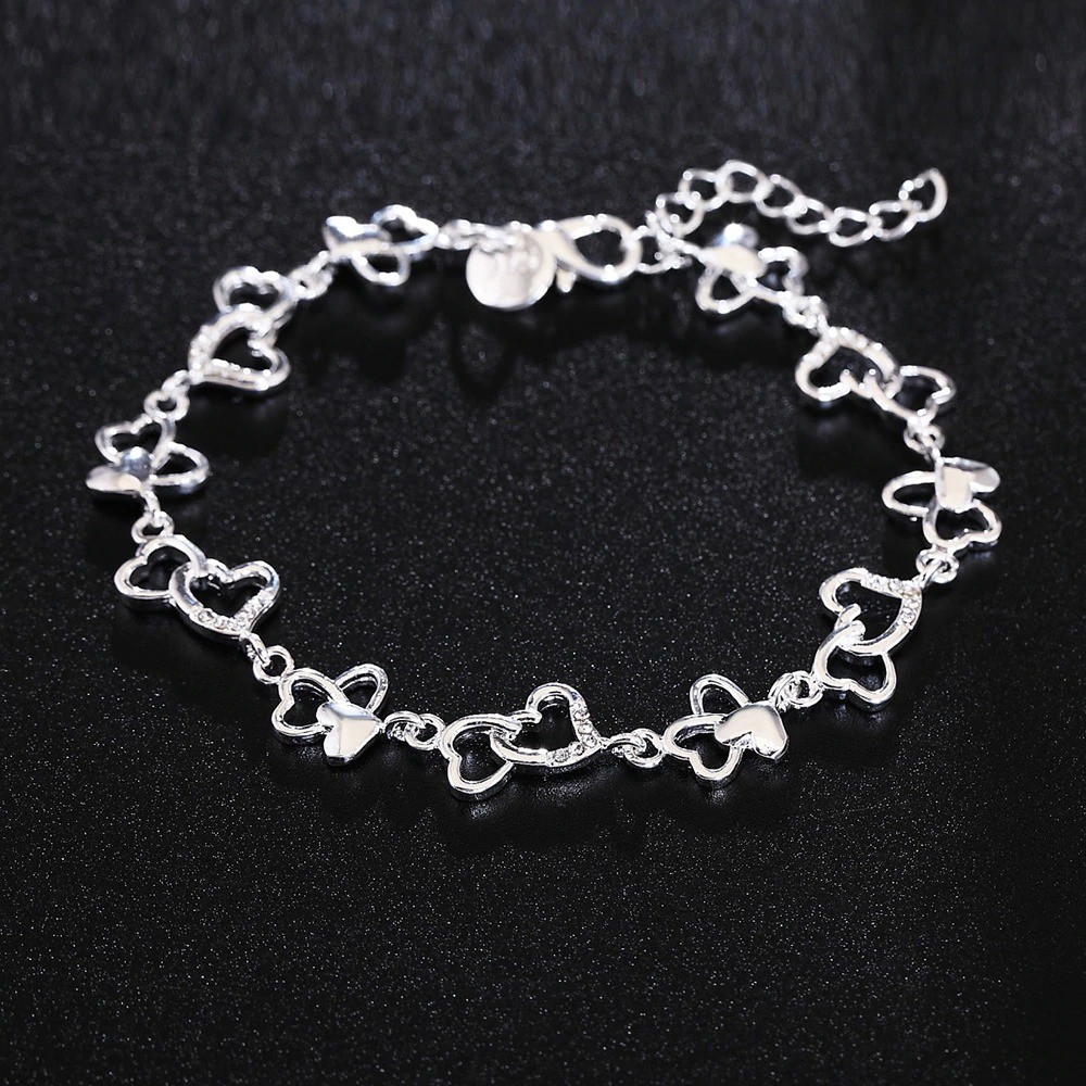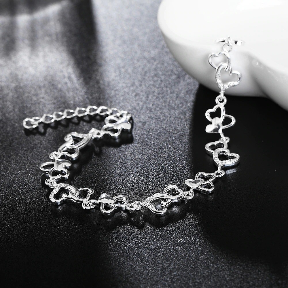 Ladies' Bracelet Linked Hearts with Stones
