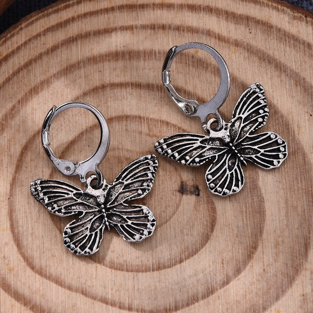 Ladies' Circular Earrings with Butterfly
