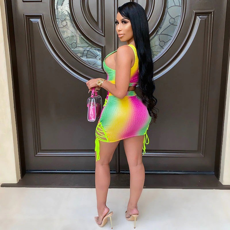 Ladies' Colourful Crop Top and Skirt B1157