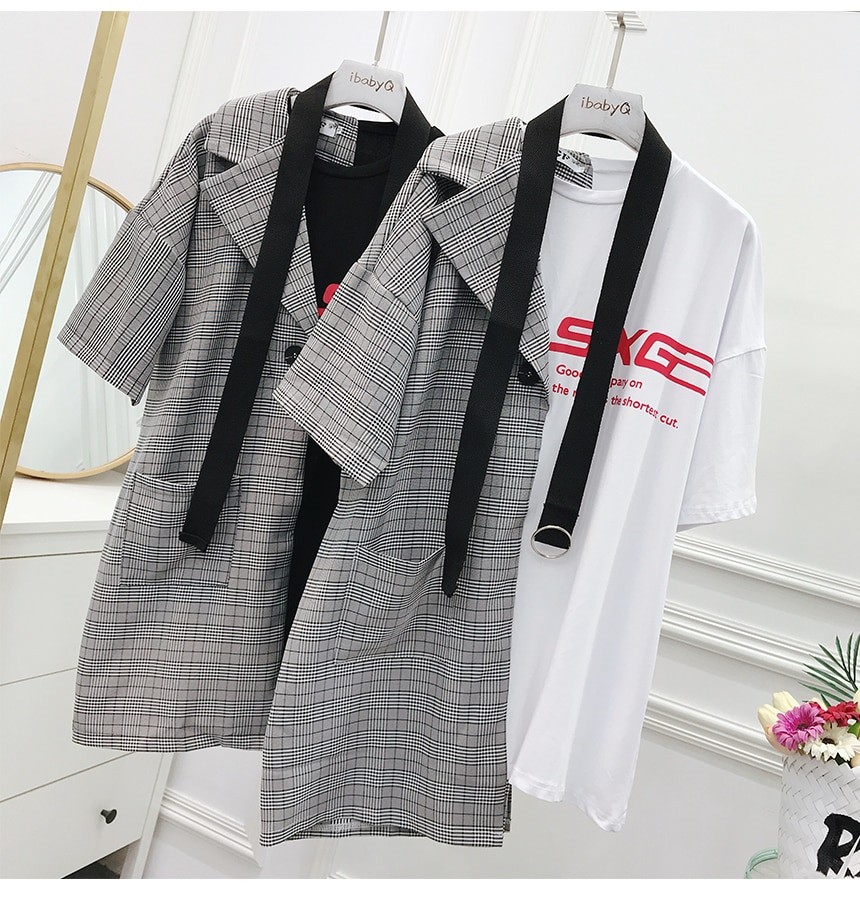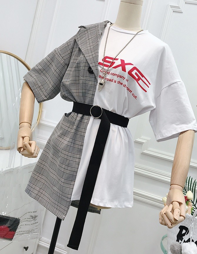 Uniquely designed ladies' mini dress combining a t-shirt and a blazer.