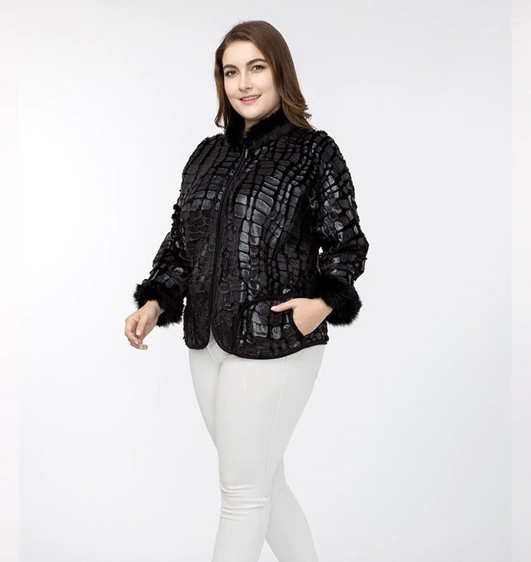 In this ladies' jacket that looks like crocodile skin, you will look truly interesting.