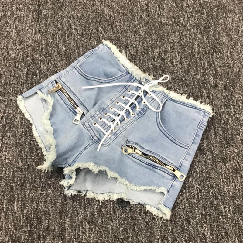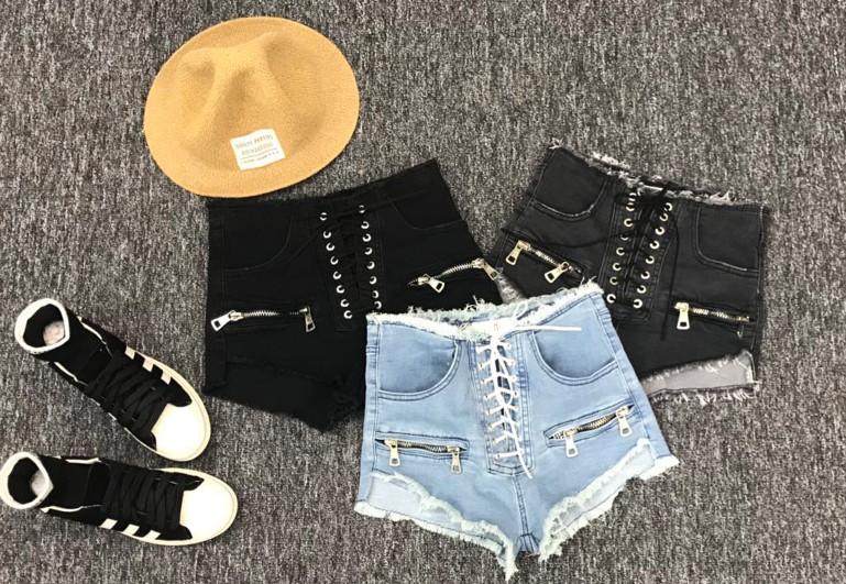 You will love these ladies' denim shorts with lacing instead of a zip.