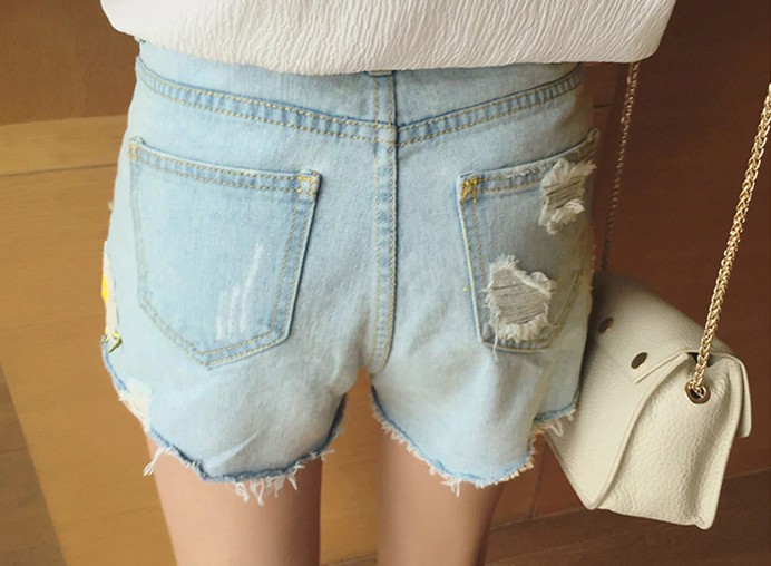 Ladies' Denim Shorts with Flowers