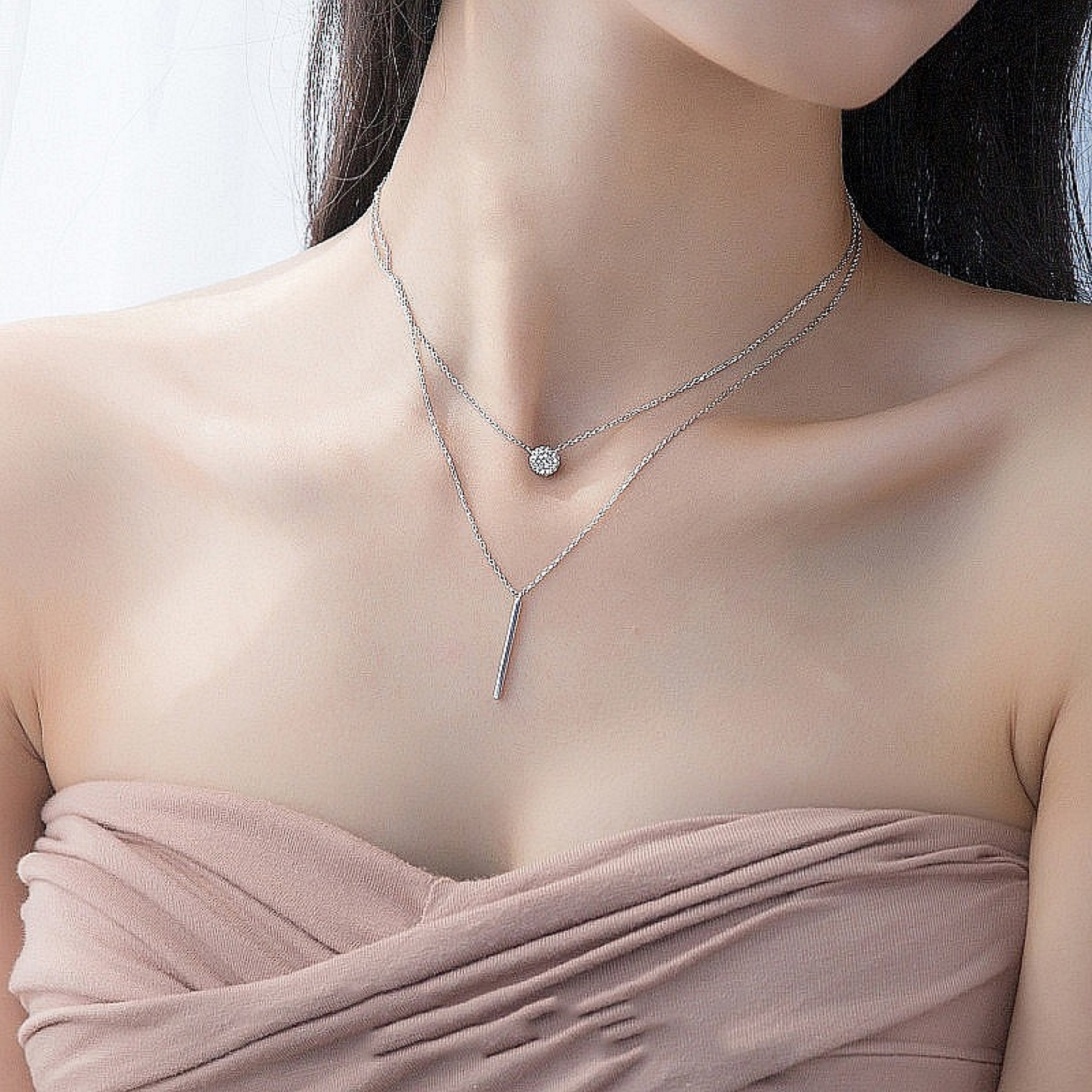 Ladies' Double Necklace with Bar