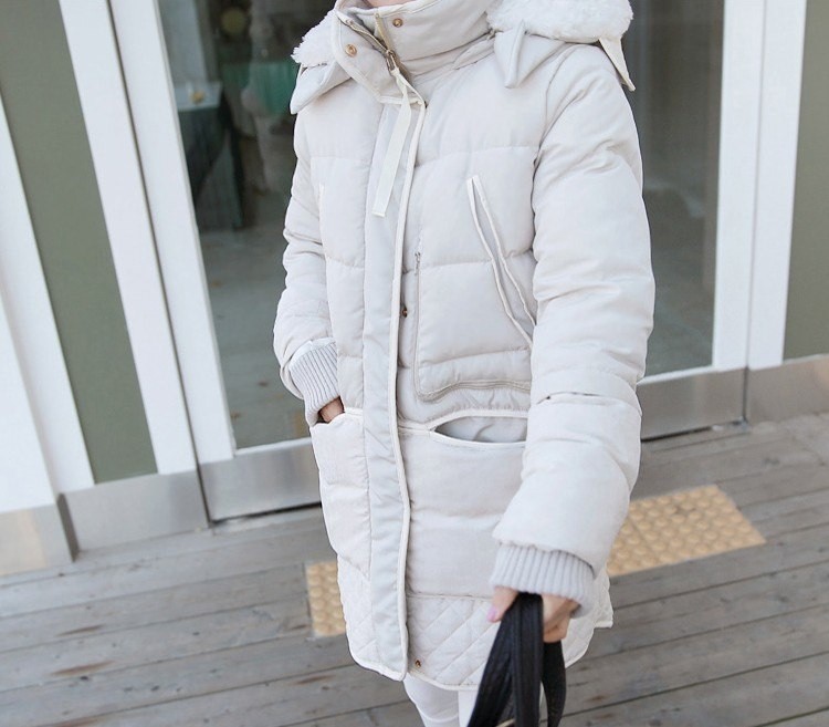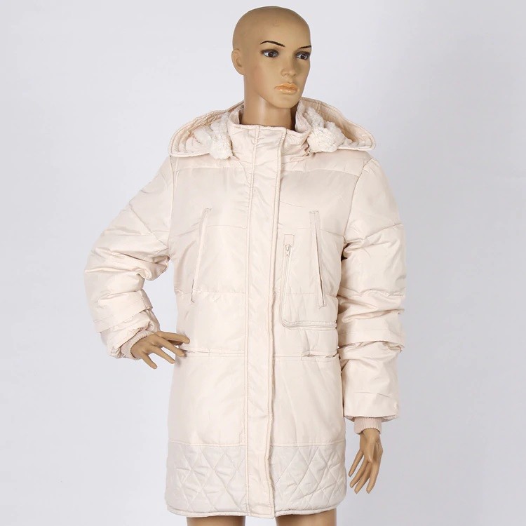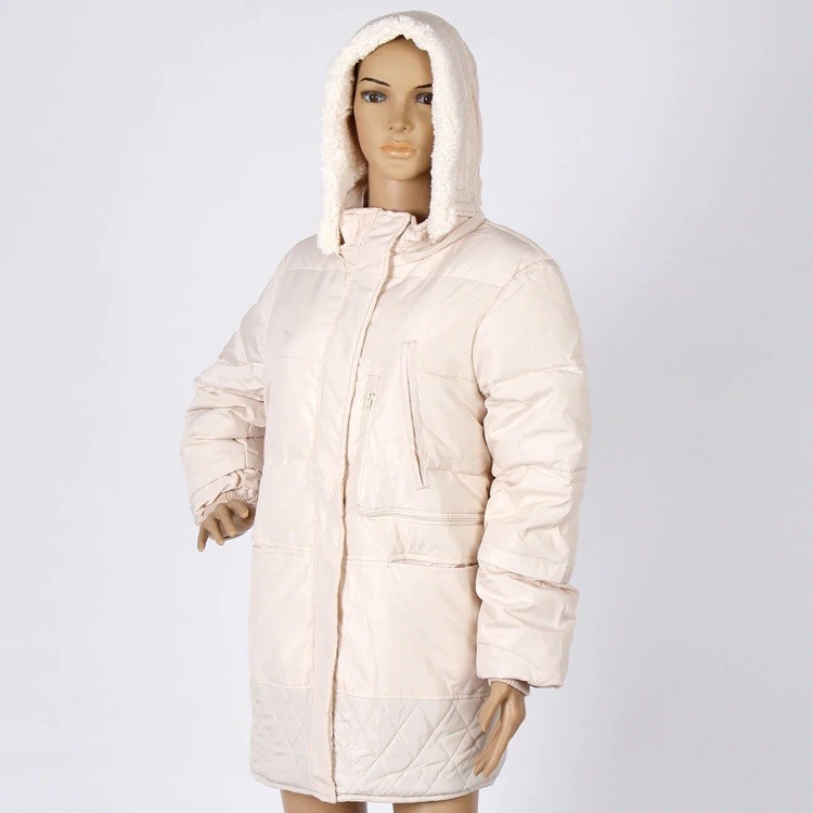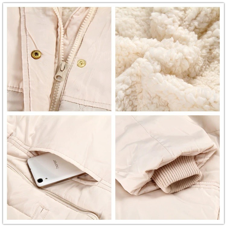 This ladies' jacket with duck down and imitation sheep wool will keep you warm in winter weather.