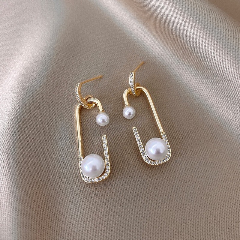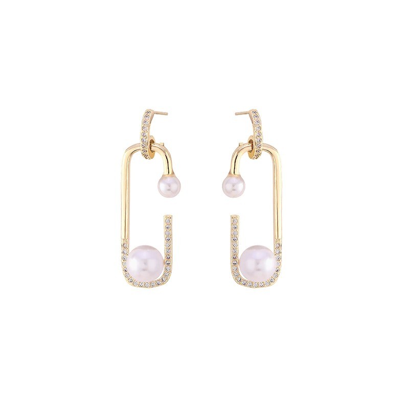 Ladies' Drop Earrings with Pearl and Zirconia G302