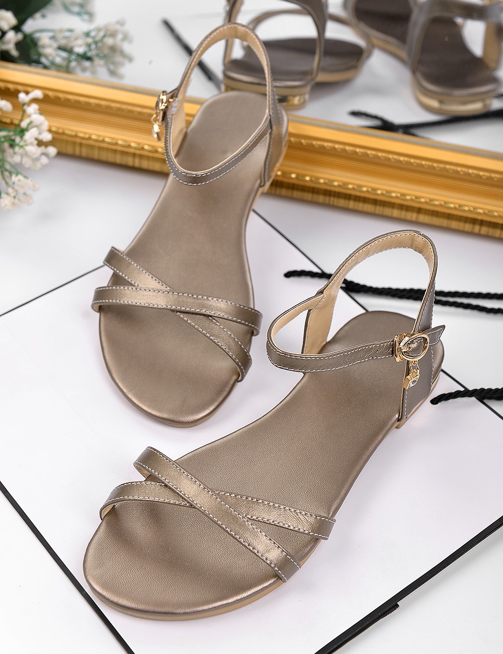 Every woman will fall in love with these elegant low-heeled sandals.