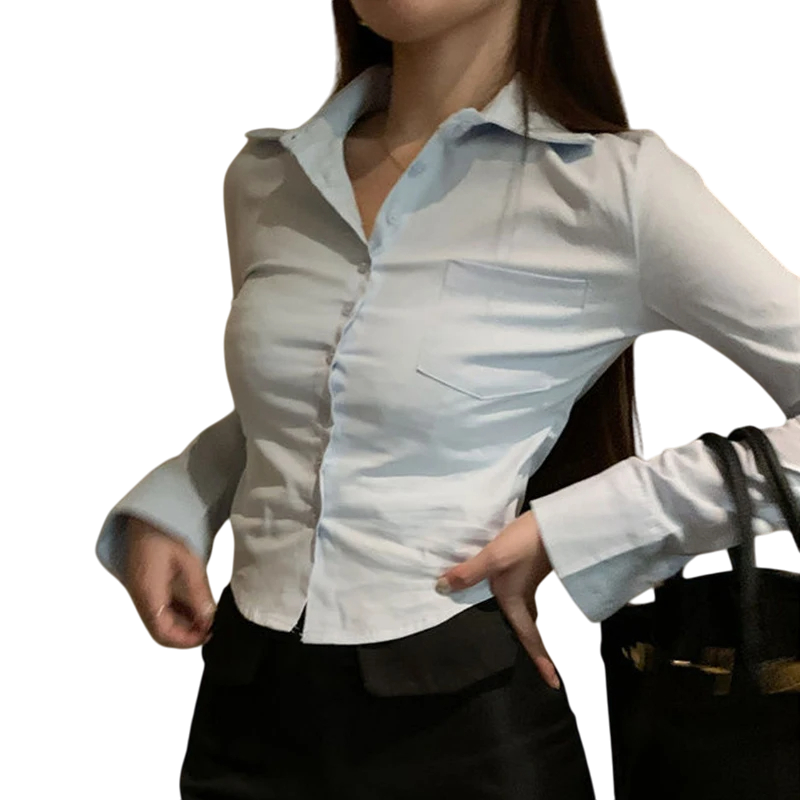 Home page Home page Clothing & Accessories Women’s Clothing Women’s Shirts Women’s Formal Shirts Ladies' Elegant Office Shirt with Long Sleeves Turned-Up Collar Buttons Pocket Formal Style for Work and Meetings