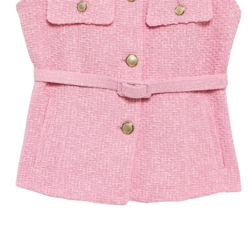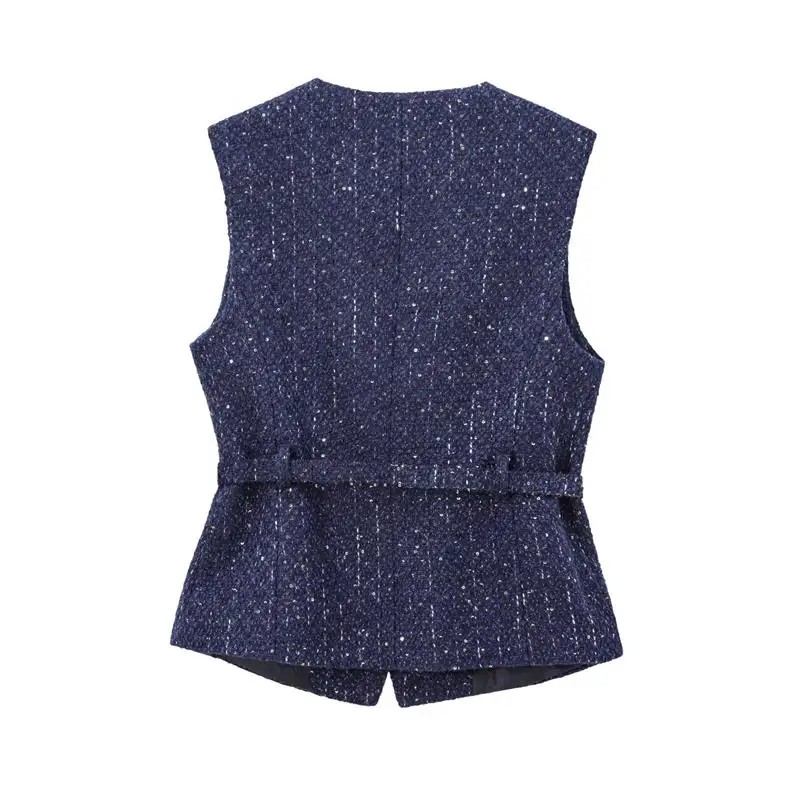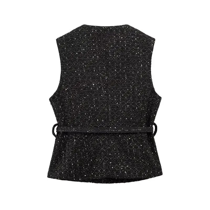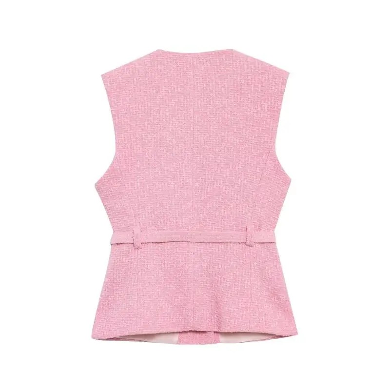 This ladies' waistcoat is the perfect choice for women who prefer an elegant and versatile style. It is ideal for both the office and leisure activities or meetings with friends. The belt around the waist allows for a flattering silhouette, while the button fastening gives the waistcoat a classic and professional appearance. Due to its plain design, it can be easily matched with various colours and accessories. If you are looking for a stylish, comfortable, and timeless piece to refresh your wardrobe, this waistcoat is an excellent choice.