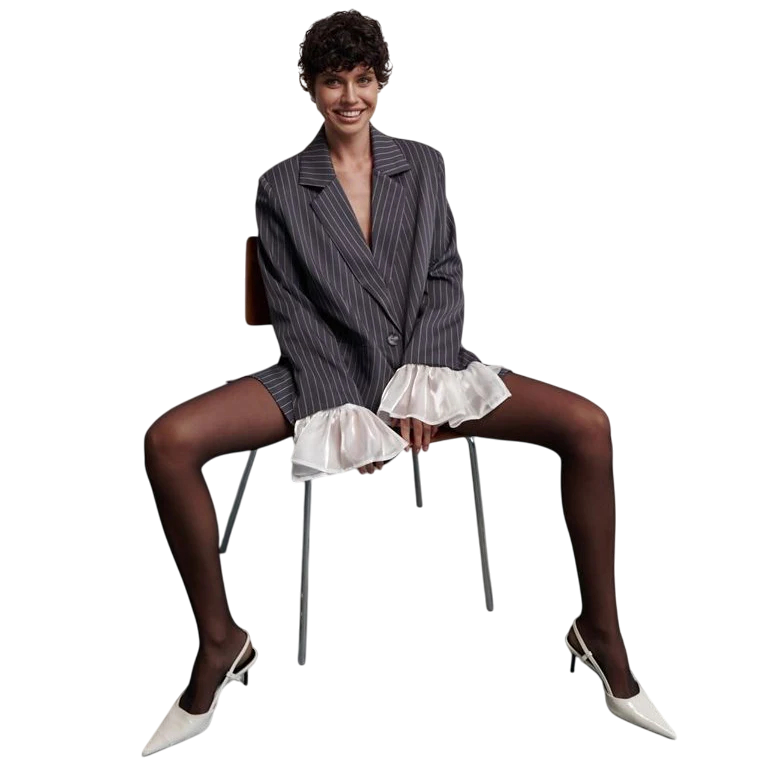 This model combines elegance, comfort and timelessness. The blend of polyester and cotton ensures a perfect appearance even after a long day, while the stripes add lightness and style to the outfit. The pockets increase practicality, making the blazer not only a fashionable choice but also a functional one. The button fastening highlights the classic character that never goes out of fashion. Thanks to the plain design with stripes, the blazer can easily be paired with trousers, a skirt or jeans, creating both elegant and casual outfits. This piece should definitely not be missing from the wardrobe of any modern woman.
