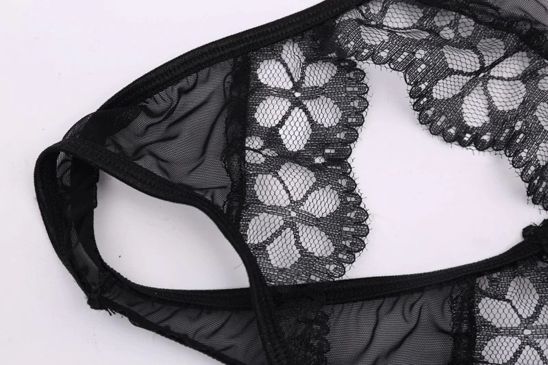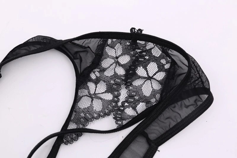 The panties are lace and feature a sophisticated opening in the centre.