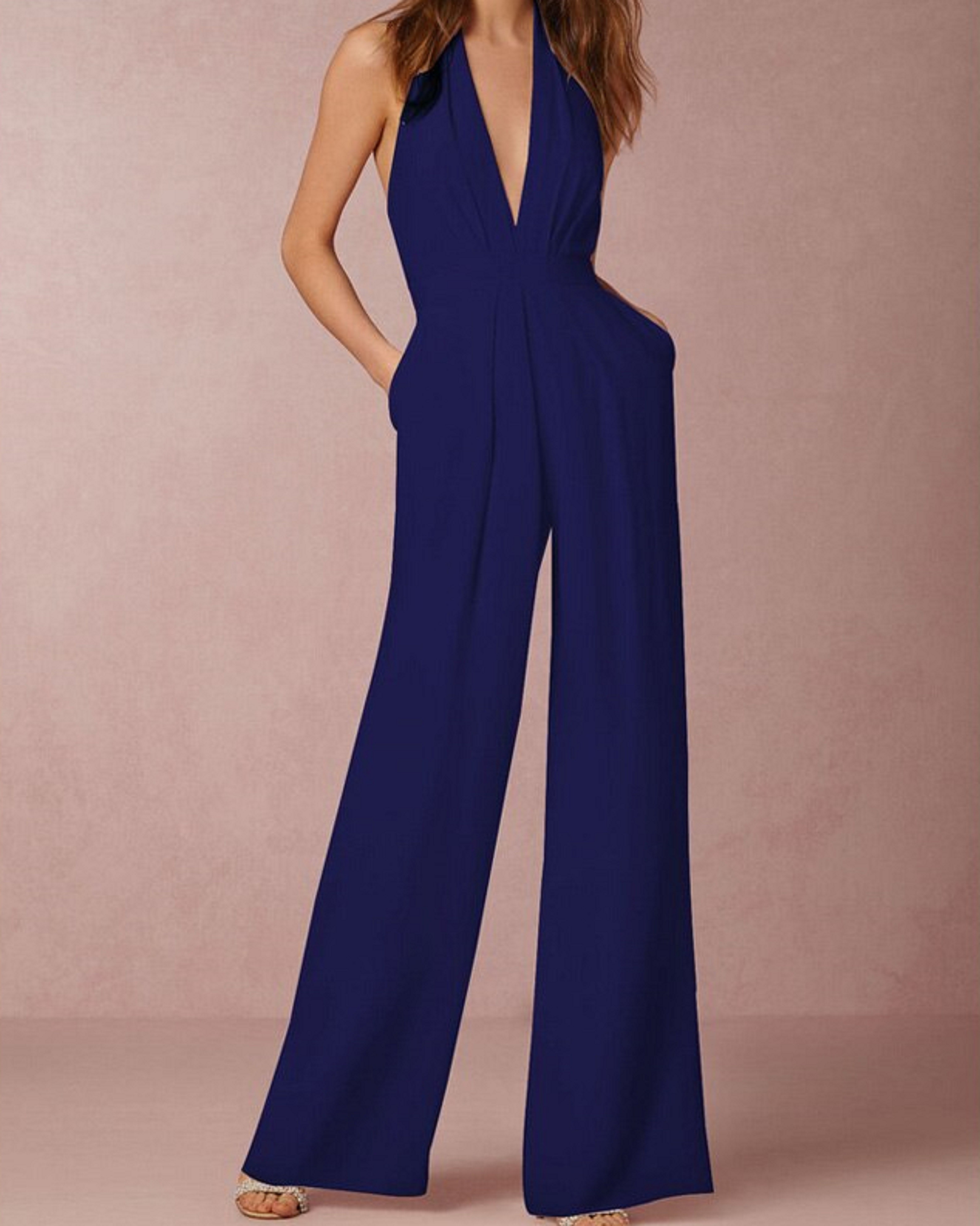 Ladies' Evening Jumpsuit with Exposed Back