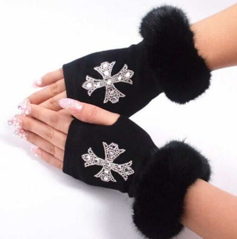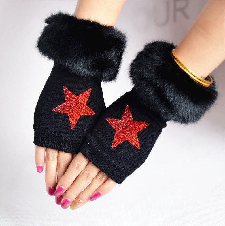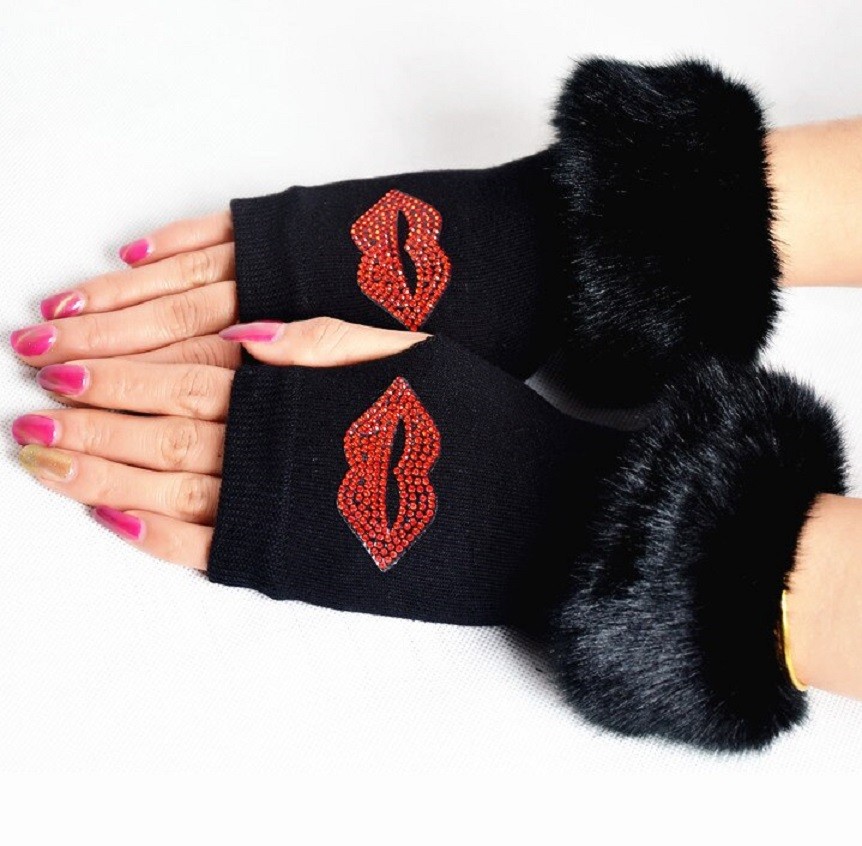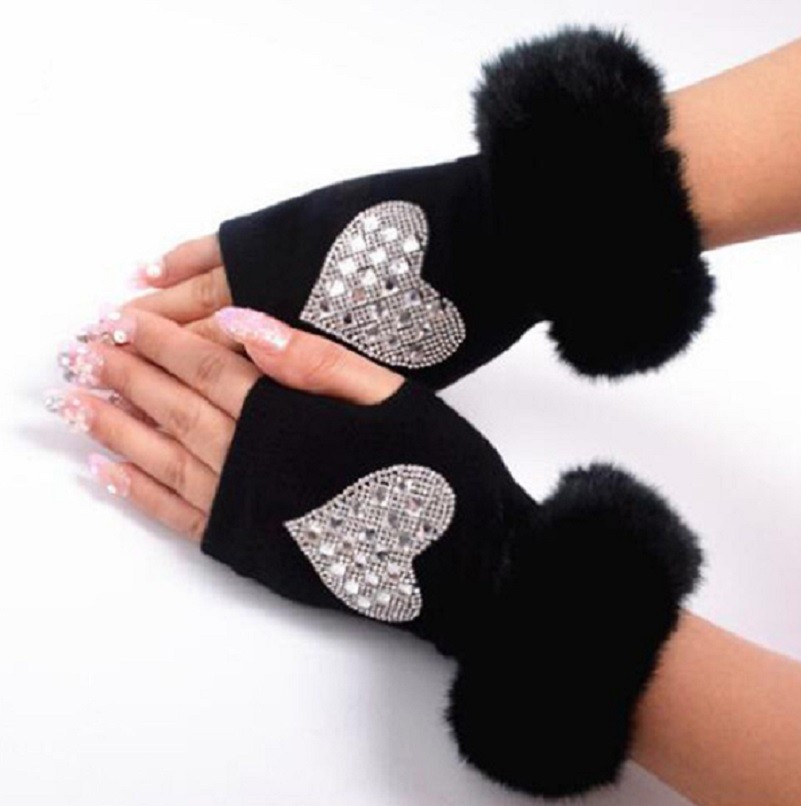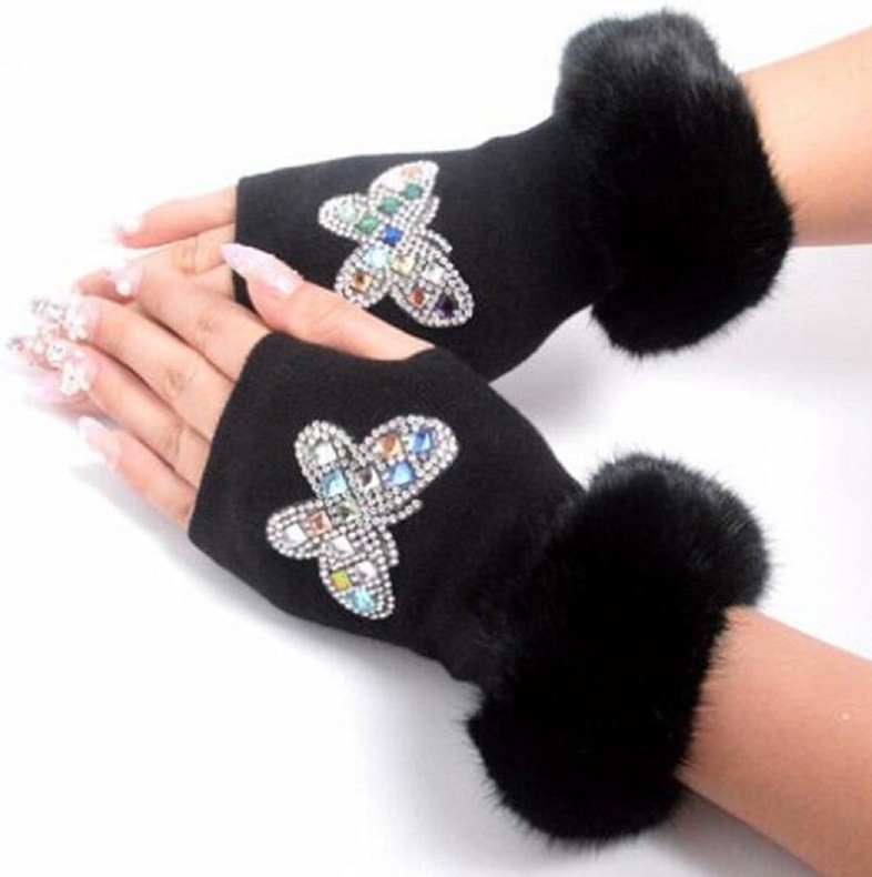 Ladies' Fingerless Gloves with Rhinestones