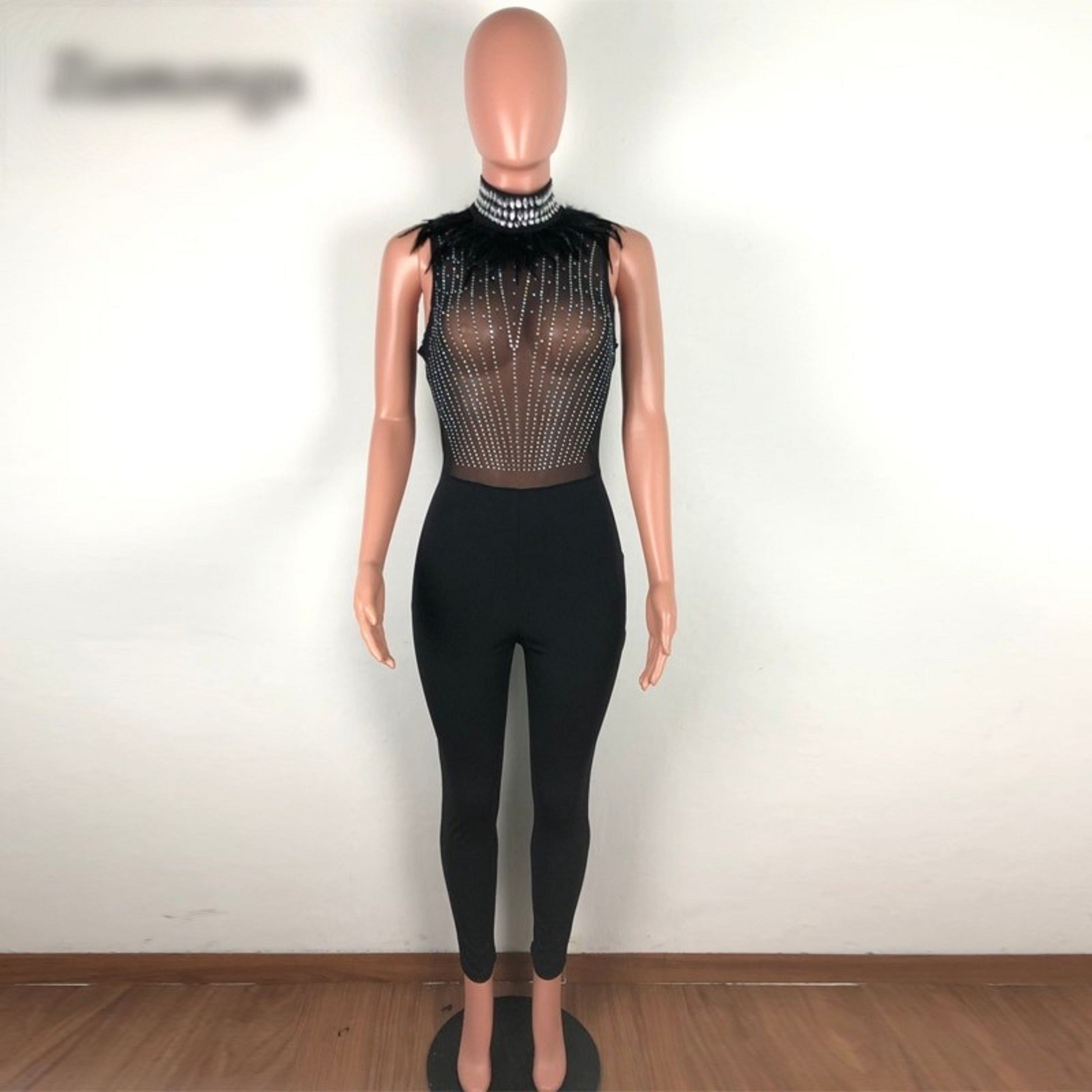Ladies' Fitted Jumpsuit with Rhinestones