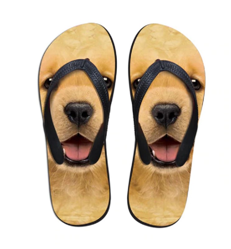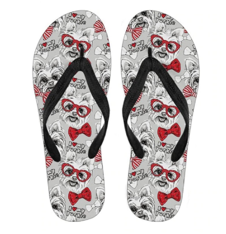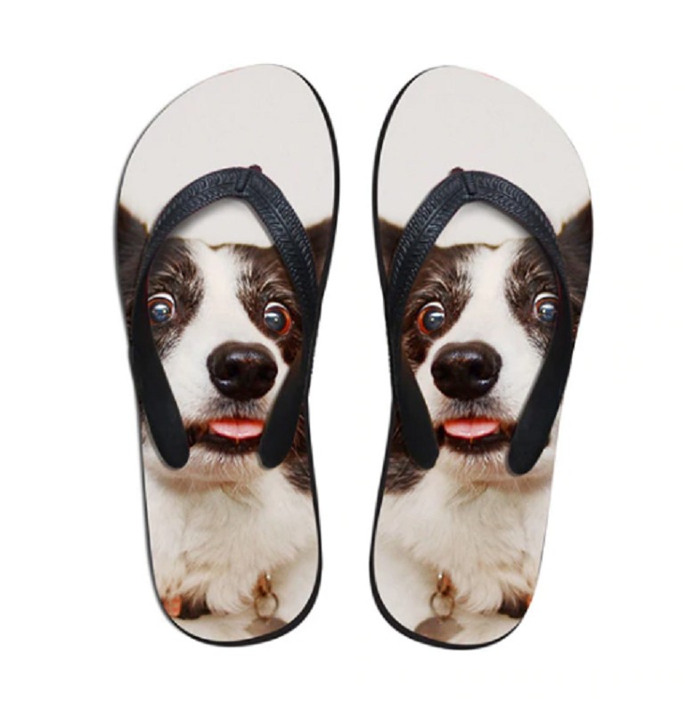 Do you love dogs and wear flip-flops? Then we have these flip-flops with a dog print for you.