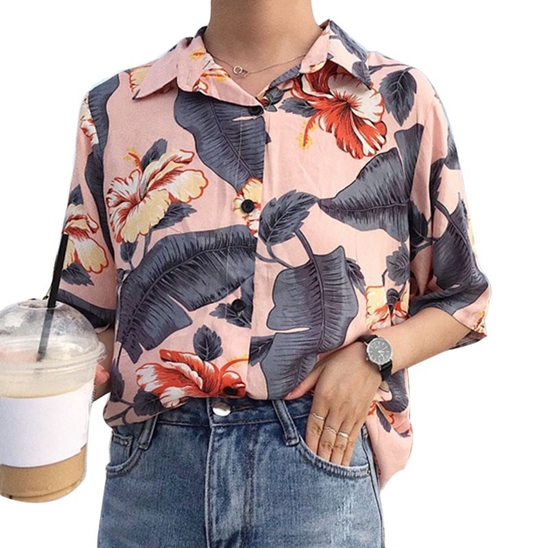 Features a print of various flowers and leaves, which are symbols of warm weather.