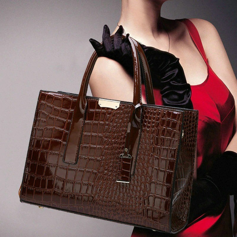 Ladies' Handbag with Crocodile Skin Pattern