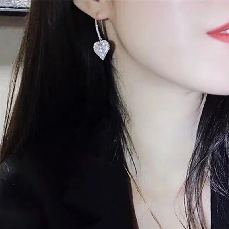 Ladies' Heart Drop Earrings with Zirconia A2736