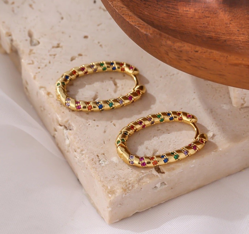 Ladies' Hoop Earrings with Coloured Zircons