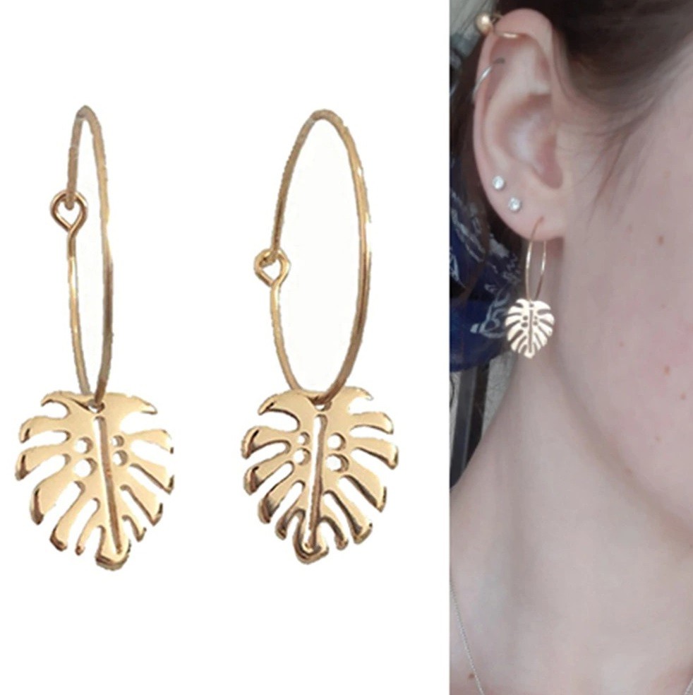 Ladies' Hoop Earrings with Leaf