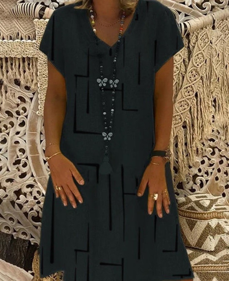 Loose-fitting ladies' dress in a comfortable A-line cut.
