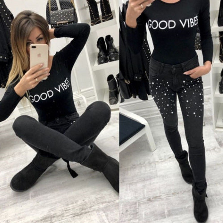 Ladies' Jeans with Pearls