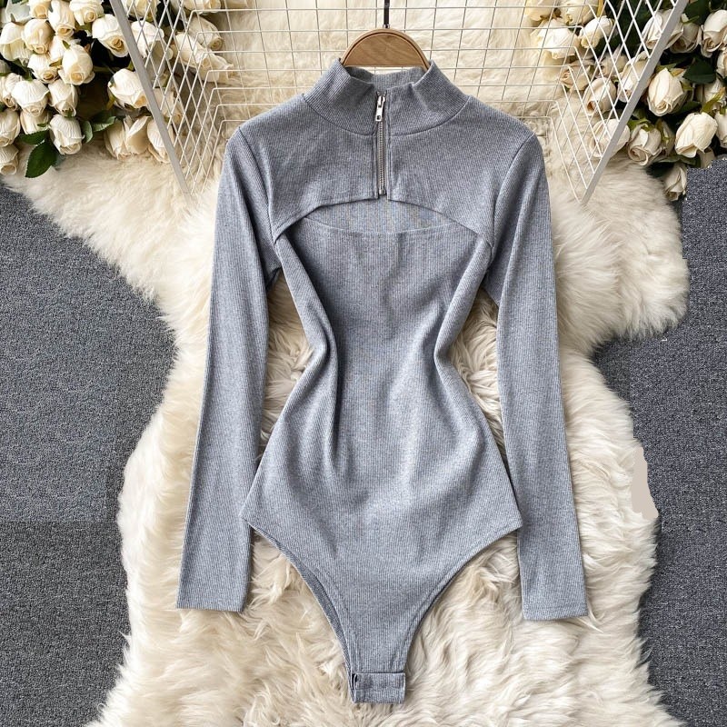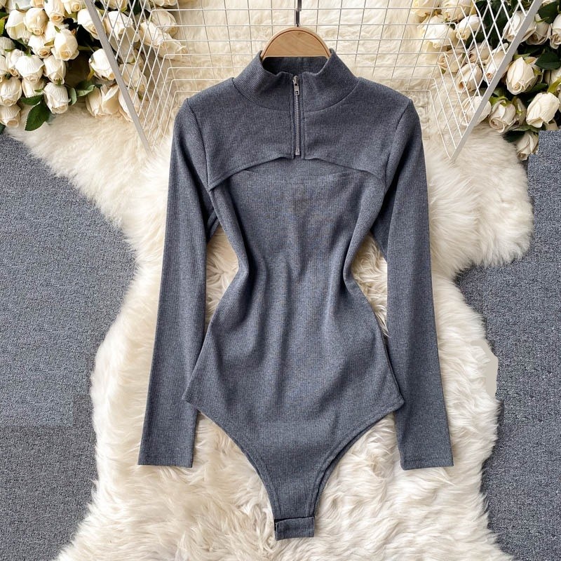 Ladies' Knitted Bodysuit with Long Sleeves
